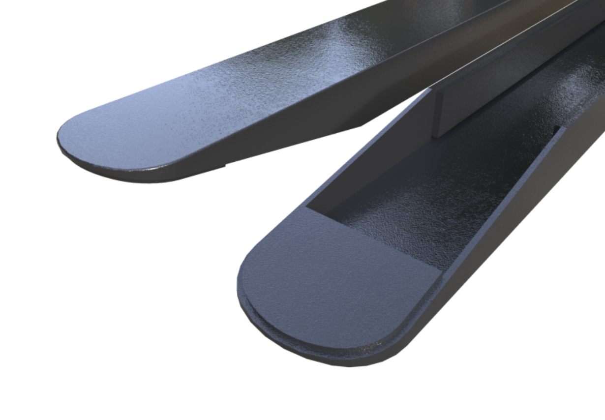 Manufactured from heavy duty 5mm thick steel with additional 8mm thick internal strengthening plates, all our fork extensions incorporate a fully rounded toe, with heavy duty capping, for easy entry into and out of loads or pallets.