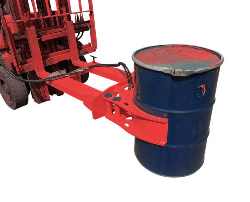 Fitted with a double ended dual acting cylinder ensuring the arms open evenly each side, the hydraulic drum handler also has a pressure relief valve for finite adjustment to its clamping power.