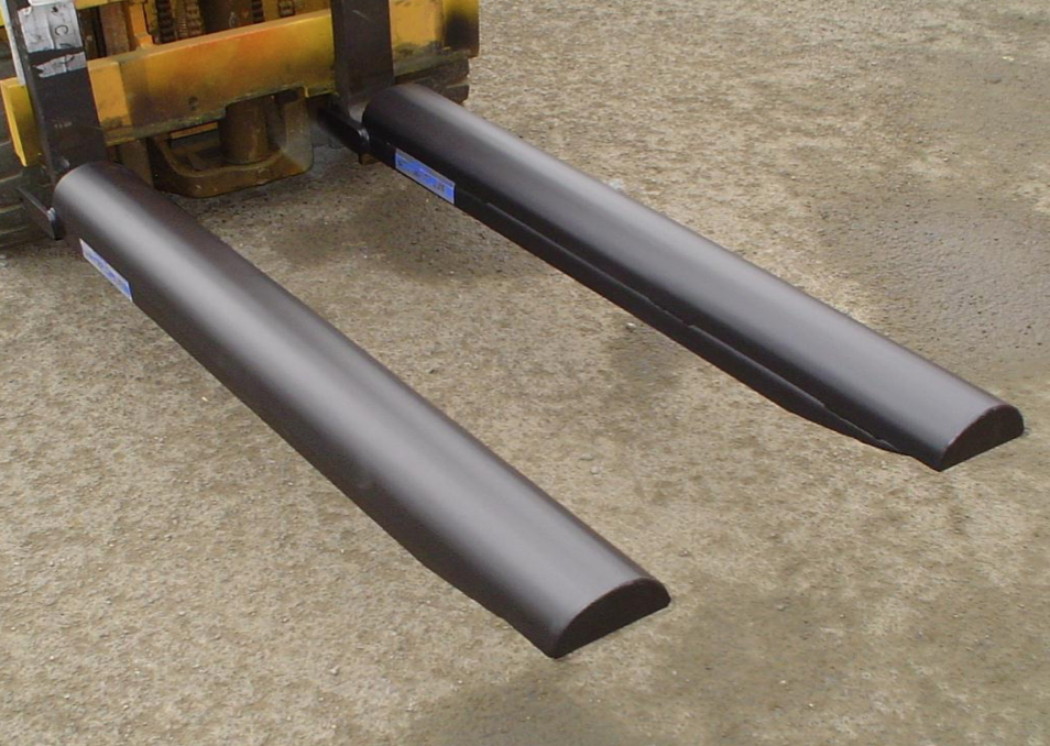 Offering all the same characteristics as our heavy duty fork extensions, these Radius Top Fork Extensions slip over the existing forklift forks to increase the load bearing area. Rolled products such as small steel coils, coils of wire, plastic etc can be handled without the fork edges causing damage to the product.