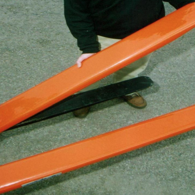 The Coil Support Extension or roll handling attachment is designed to go over the forks to give greater bearing area for carrying coils. -